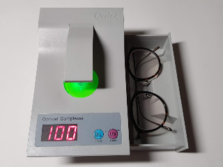숫자표시등에 100이 보여진 뒤 측정대에 렌즈를 올려두면, 바로 청광/UV 투과율 확인이 가능합니다.