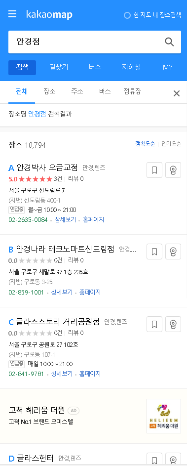 두번째는 안경점에 대한 정보를 찾아보기 시작합니다.