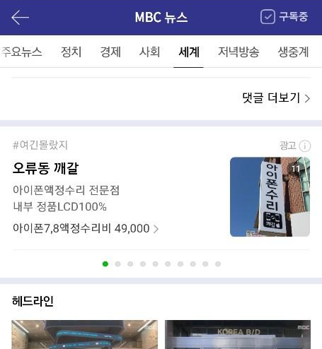 그 하단에 아래와 같이 노출 되는 광고입니다.